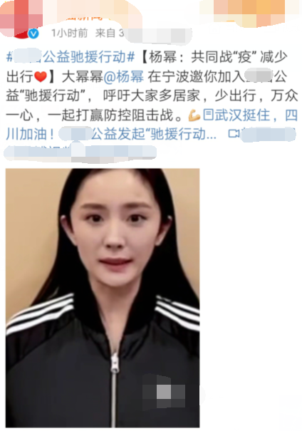 就在魏大勋捐款20万后,绯闻女友杨幂也亲自录制视频驰援武汉。1月29日晚上,某官博放出杨幂最新视频,她远在宁波隔空呼吁大家多居家,少出门,表示要万众一心,一起打赢防控阻击战。