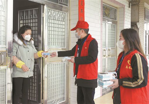 2月2日,澧县澧浦街道柳家社区,志愿者上门为居民派送口罩。该社区在外务工的居民杨富松,得知在防控疫情工作中口罩紧缺的情况,便多方联系购买到4000只医用普通口罩,专程驱车送回家乡,由社区干部分发给近2000名居民。柏依朴 李献军 摄影报道