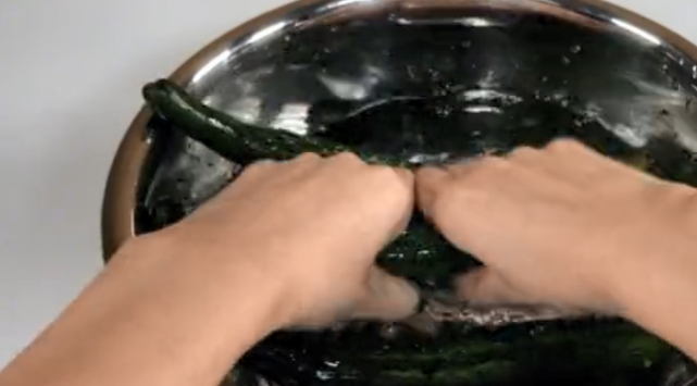 准备一盆清水,水中加入适量的食盐,再将食盐搅拌均匀,然后将黄瓜放入淡盐水中,淡盐水完全没过黄瓜,淡盐水可以保持黄瓜新鲜不腐烂,并且防止水滋生细菌。最后将黄瓜放在阴凉避光的地方就可以了,该方法可以让黄瓜保存半个月以上。
