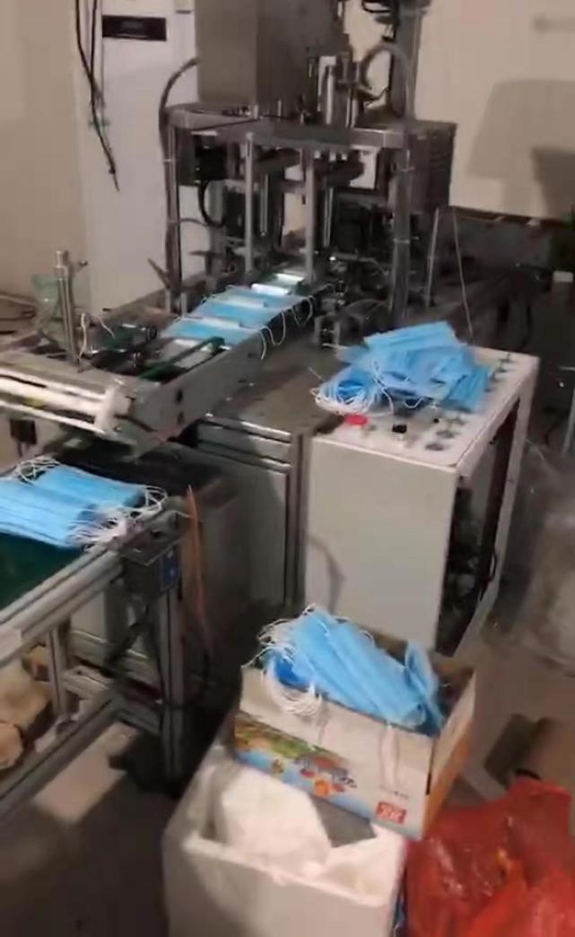 长垣警方捣毁的假冒伪劣口罩生产小作坊,无任何杀菌消毒设备。视频截图
