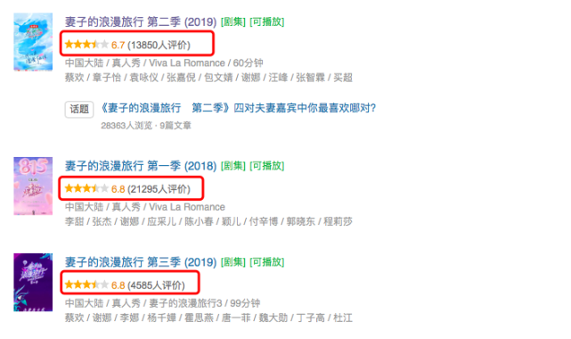 从三季节目的评分明细来看,节目的人气是一季不如一季,第一季节目还有2万多人打分,第二季打分人数骤减至1万多,第三季更可怜,仅仅只有4千多人打分。是因为嘉宾不给力,节目人气才会下滑吗?非也,第二季节目邀请到了章子怡、袁咏仪两位大咖加盟,整体知名度力压第一季的阵容,但节目的人气不还是输了?归根结底,还是节目的模式太过单调。