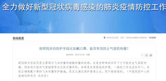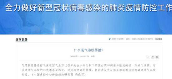 中新网客户端2月9日电(李金磊)国家卫健委网站8日发布疫情问答,中国疾控中心传染病处研究员冯录召表示,目前尚没有证据显示新型冠状病毒通过气溶胶传播。新冠肺炎目前还是主要通过飞沫传播和接触传播的疾病,在某些特殊的条件下才可能发生气溶胶传播,例如进行临床气管插管等专业医疗操作时。如果是在常规临床护理、一般的工作生活条件下,采取正确佩戴口罩的飞沫传播防护措施,是足以满足保护普通公众,而不被感染的。