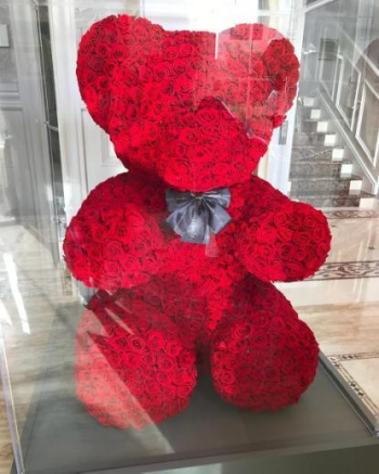 上个月,王诗龄还收获了品牌方送出的大礼包,并在个人社交网站晒了出来。眼尖的网友看到客厅角落里的一个小熊,这个小熊由玫瑰花瓣组成,标价高达9万人民币,真是非常壕气了!