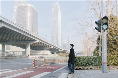 场景:等红灯的上班族。新京报记者 郑新洽 摄
