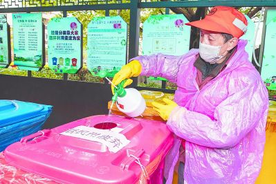 “疫情期间,我们的垃圾分类屋全天候开放,居民随时可以过来扔废弃口罩。”垃圾分类管理员方家和身着雨衣、雨鞋、手套、帽子、口罩等防护装备,他告诉记者,近来他的上班时间按要求延长了一小时。