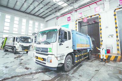 密闭压缩车进入红庙岭的焚烧发电厂,在一号卸料口卸料、消杀。
