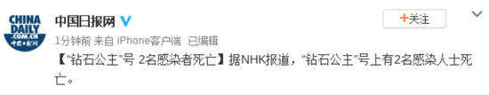 原标题:日媒 “钻石公主”号上2名感染者死亡