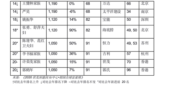 来源:《2020世茂 深港国际中心•胡润全球富豪榜》