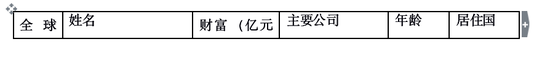 亚马逊56岁的杰夫·贝佐斯以9,800亿人民币的财富蝉联世界首富。他的财富比去年下降5%,主要是因为他与前妻麦肯齐达成了“史上最贵”离婚协议。麦肯齐以3,080亿人民币的财富独自上榜。亚马逊是市值达到1万亿美元的四家公司之一,其他三家分别是微软、苹果和谷歌。贝佐斯以1.65亿美元的价格买下媒体大亨大卫·格芬位于贝弗利山庄的豪宅,创下洛杉矶地区最贵房屋的成交记录。今年2月,贝佐斯承诺提供100亿美元帮助应对气候变化。