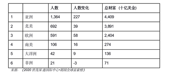 亚洲以4.4万亿美元的总财富领先于北美,而北美为3.89万亿美元。