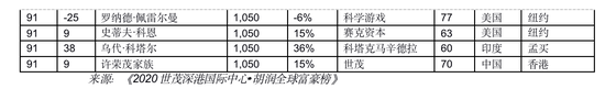 来源:《2020世茂深港国际 中心•胡润全球富豪榜》