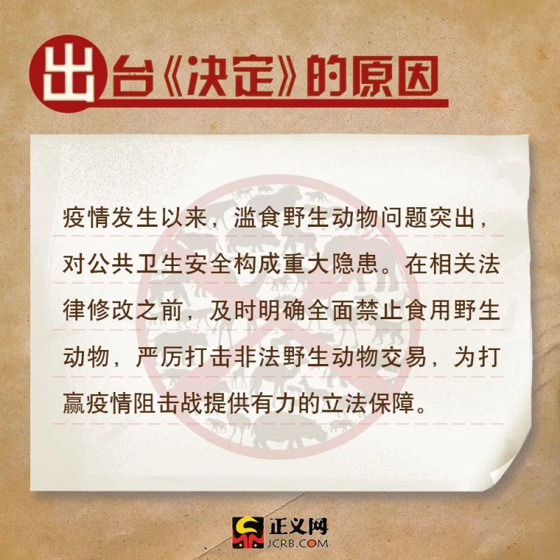 24日,十三届全国人大常委会第十六次会议表决通过《全国人大常委会关于全面禁止非法野生动物交易、革除滥食野生动物陋习、切实保障人民群众生命健康安全的决定》。问题来了,《决定》对全面禁食野生动物是如何规定的?禁食的界限在哪?