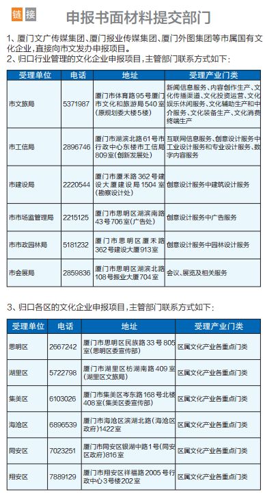 1、申报单位应在厦门市行政区域内依法设立,具有独立法人资格的企业,无不良信用记录,并依法履行统计义务且已纳入文化产业统计名录库的文化企业。