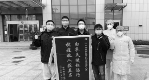 治愈出院的患者给江苏医疗队送来锦旗 现代快报+/ZAKER南京特派记者 张浩然 摄