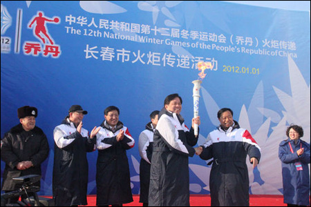 2012年1月1日,以“和谐、运动”为主题,以“冰雪吉林省,魅力十二冬”为主题口号的第十二届全国冬季运动会(乔丹)火炬传递长春市传递活动在长春净月潭国家森林公园隆重举行。火炬手以跑步的形式手手相传,在圣洁的冰雪世界里完成。本届冬运会的火炬传递活动由乔丹体育股份有限公司冠名,并且今天参加火炬传递的来自长春市社会各界的11名火炬手、12名护跑手的服装装备均由乔丹体育提供。