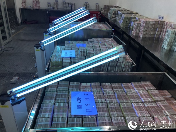 银行对“回笼现金”进行消毒隔离,确保市民用上“放心钱”。建行贵州省分行供图