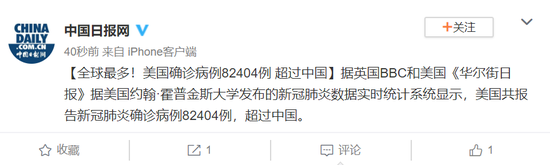 原标题:全球最多!美国确诊病例82404例 超过中国