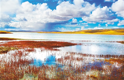 水草丰茂的三江源头。本报记者 洪玉杰 摄