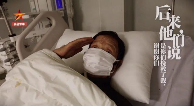 一位老兵用敬军礼的方式向医护致敬