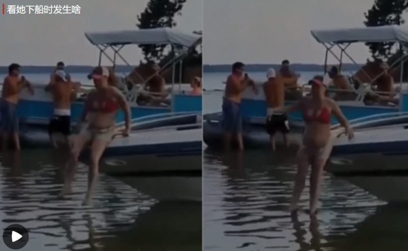 核心提示:看她下船时发生啥一名女子身穿泳衣坐在船头突然想游泳,不料在下船时却发生意外一幕,现场超级尴尬。