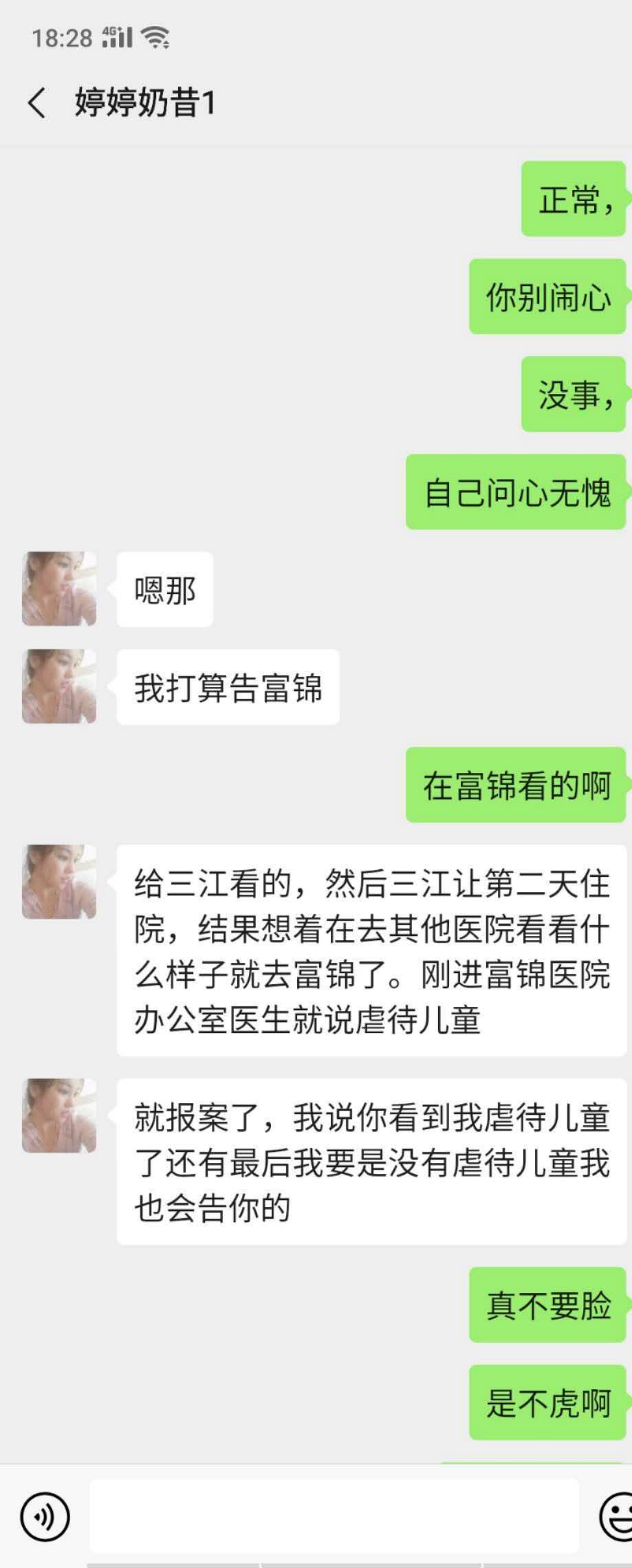 知情人透露,凡凡继母曾与朋友表示,自己被医院指认虐童,医院报警。受访者供图