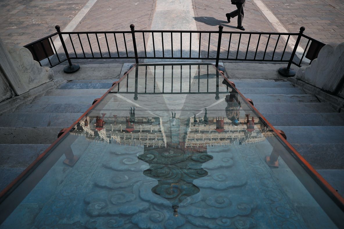 场景:祈年殿院落重新对游客开放,一名游客走过被保护起来的古迹。新京报记者 侯少卿 摄