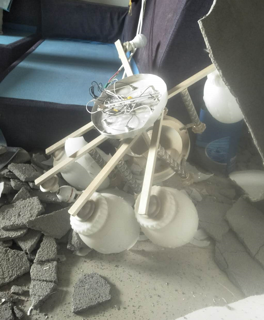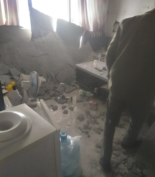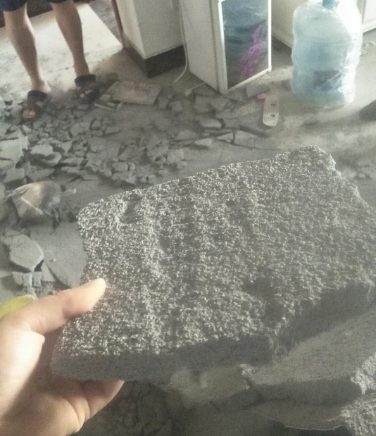周女士:当时现在像是地震一样的,房顶像是塌下来了,还好当时人都睡觉了,没有打到人。