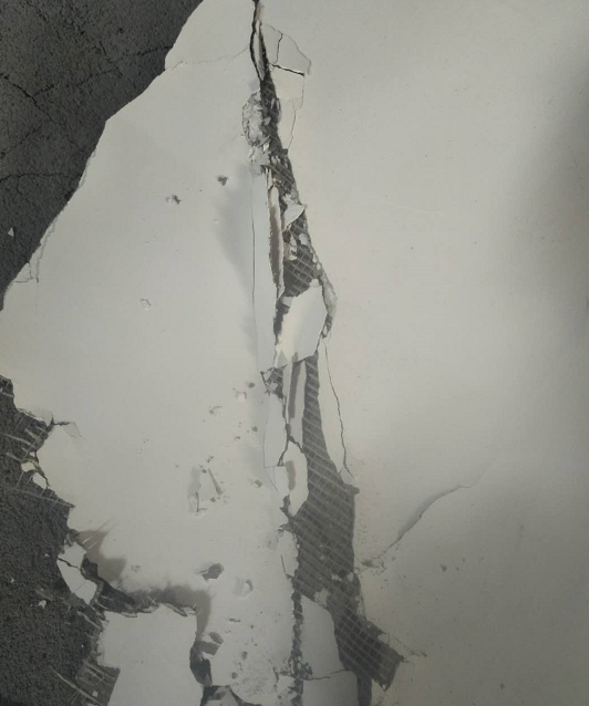详细记录了天花板脱落的情况