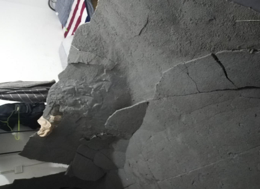 周女士在贵阳市大唐果小区有一套房子,5月16号凌晨,在房子客厅天花板的位置,竟然发生了大块的脱落。
