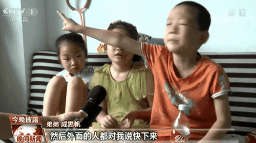 三个孩子讲述了事发经过,他们正在家中看电视时,突然发现窗外浓烟滚滚。浓烟呛鼻,弟弟妹妹立即乱作一团,但姐姐成思亿却很淡定。