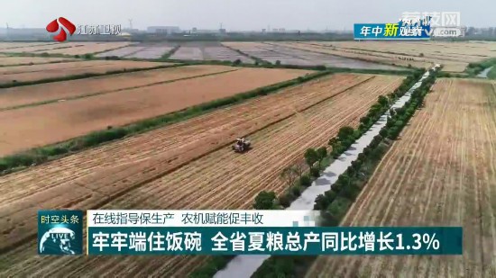 原标题:江苏省夏粮总产同比增长1.3% 牢牢端住饭碗