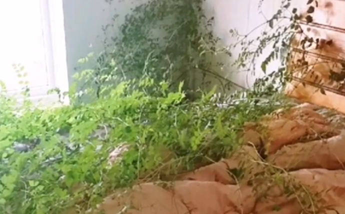 男子回宿舍发现床上长出青草 凑近拍下奇特景象