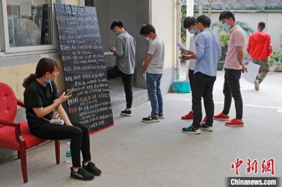 资料图:应聘者在劳务市场等待面试。 殷立勤 摄