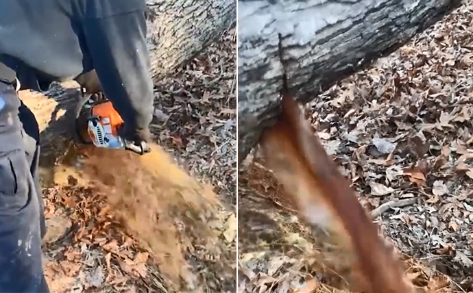全球报道:工人砍大树时切了条口子 镜头拍下随后诡异画面