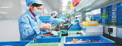 安徽省马鞍山慈湖国家高新区安徽共芯光子科技有限公司的职工正在加工用于移动5G网络的光通讯产品。