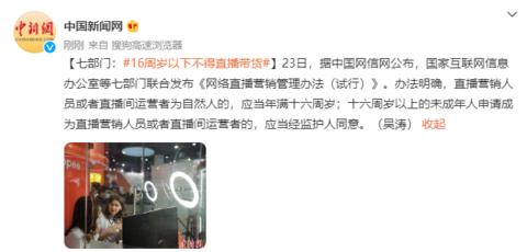 原标题:七部门:16周岁以下不得直播带货