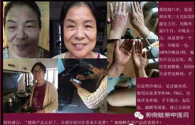 不过,现在好了,我亲身经历了婕斯产品给我健康上带来的变化,给我家里人带来的好处,还有南京团队的日益壮大,我看到越来越多的成功人士加入婕斯,在婕斯的平台上获得了自己想要的健康和年轻还有财富,也看到他们把婕斯产品传达给身边好友,帮助好友的家人从疾病到健康,从亚健康到真真正正的健康,从丑到美,从老到年轻的改变,我真的越来越爱婕斯了,我爱他的产品,爱他的模式,爱他的文化,助人的文化,爱他的愿景,爱老板娘,超爱超爱!萌萌哒!!
