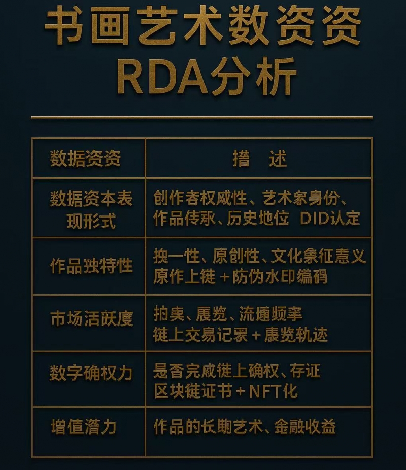这意味着,在RDA机制日趋成熟的背景下,书画艺术或将从“文化象征”跃迁为“数字金融资产”,成为连接文化、科技与资本三者的枢纽型资产。