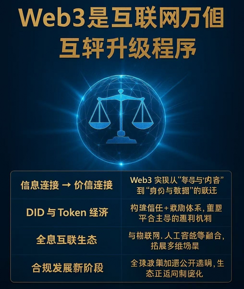这意味着,Web3不是对Web2的替代,而是对“信任机制、激励体系与协作结构”的根本重构,是互联网从“信息网络”迈向“价值网络”的关键一跃。