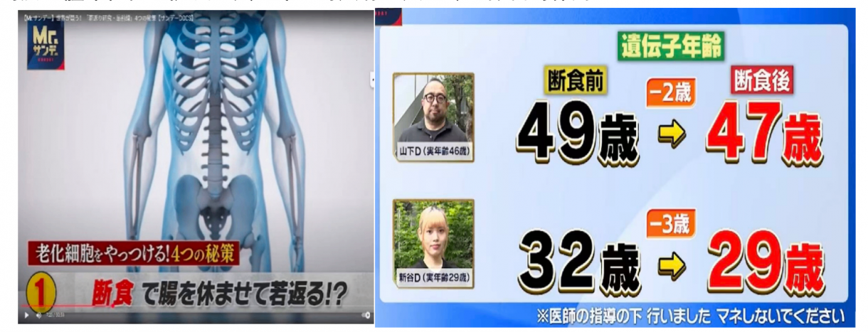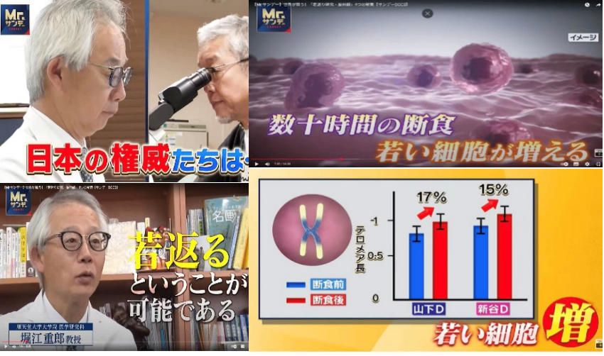 日本代表隊由順天堂大學醫院副院長、日本著名長壽專家堀江重郎教授帶隊參加。堀江教授在大會上主要發表了關於辟穀斷食的研究成果,其研究結果令人矚目。日本研究團隊對一對男女進行了為期兩天的辟穀斷食實驗,之後通過嚴格的醫學科學驗證發現,這兩位受試者的細胞年齡均減少了約兩年,效果驚人。日本頂尖醫學機構的這項研究成果充分證明了辟穀斷食對於人體年輕化、抗衰老與延年益壽具有巨大且令人振奮的作用。