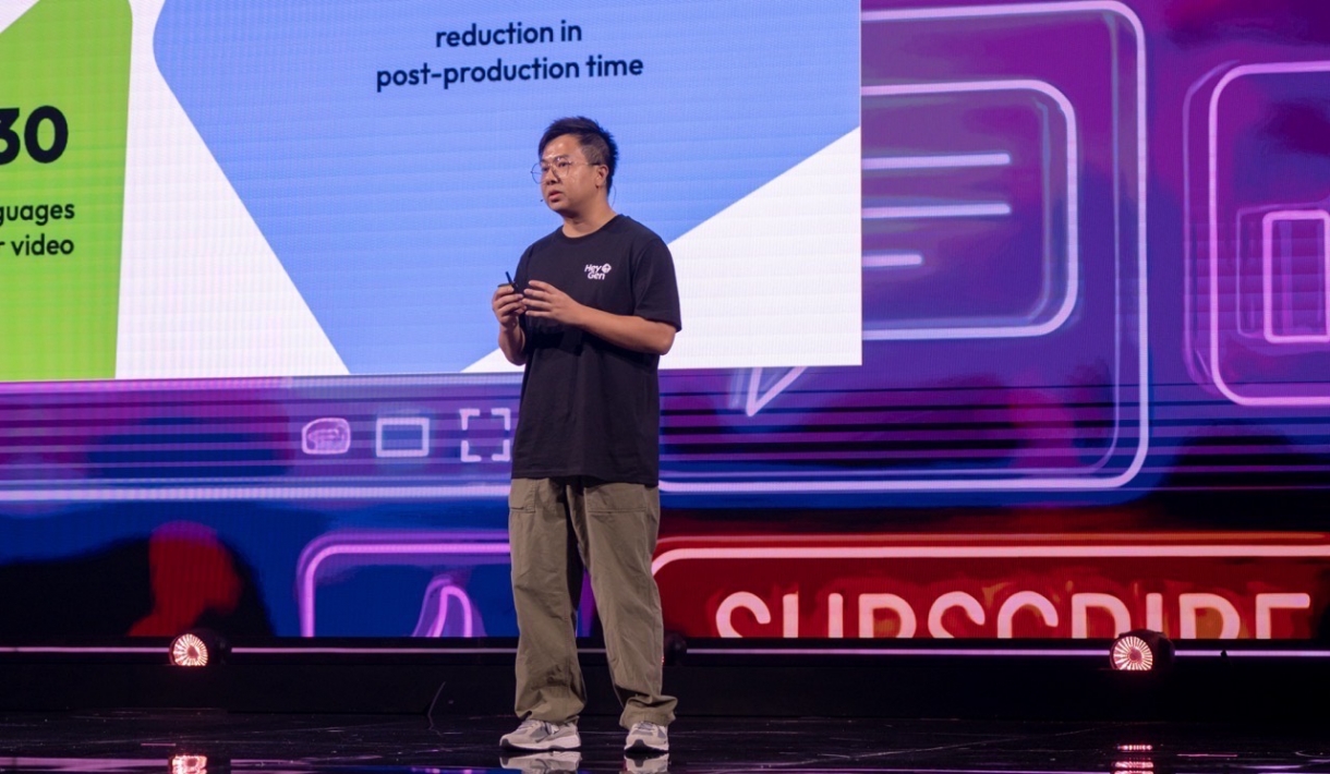 HeyGen 联合创始人兼首席创新官 Wayne Liang 展示 AI 数字人如何渗透现代创意流程。他演示的数字分身可在数分钟内生成多语言视频,证明 AI 能在不牺牲质量的前提下大幅压缩制作时间。Liang 分享麦当劳、Klaviyo 与 Apple TV 等全球品牌使用 HeyGen 快速本地化内容与缩短制作周期的案例,并发布 HeyGen 最新能力:可实时互动的 AI 数字人,用于即时交流与观众互动。“创意工作正进入一个新阶段——AI 不是取代想象力,而是加速并扩展它。”他说。