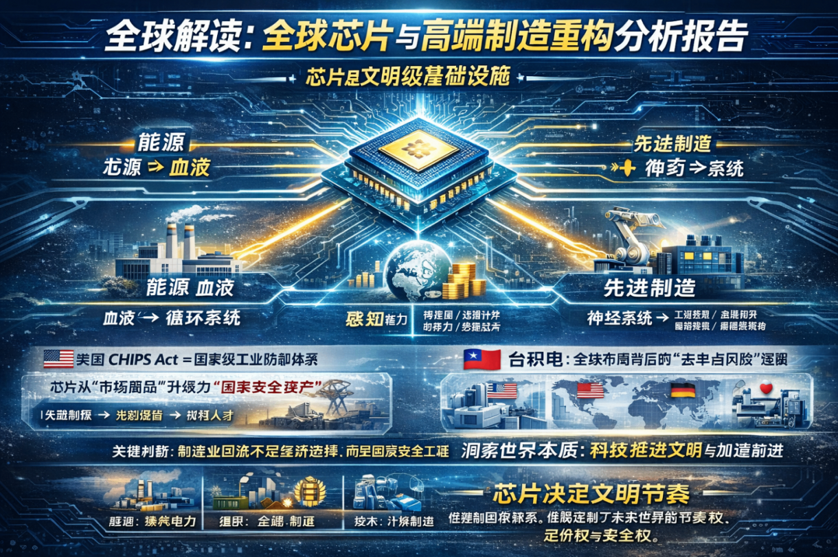 全球芯片与高端制造重构,正在把世界从“效率最大化时代”带入“安全与能力优先时代”。科技不再只是工具,而是文明运行的底层逻辑。