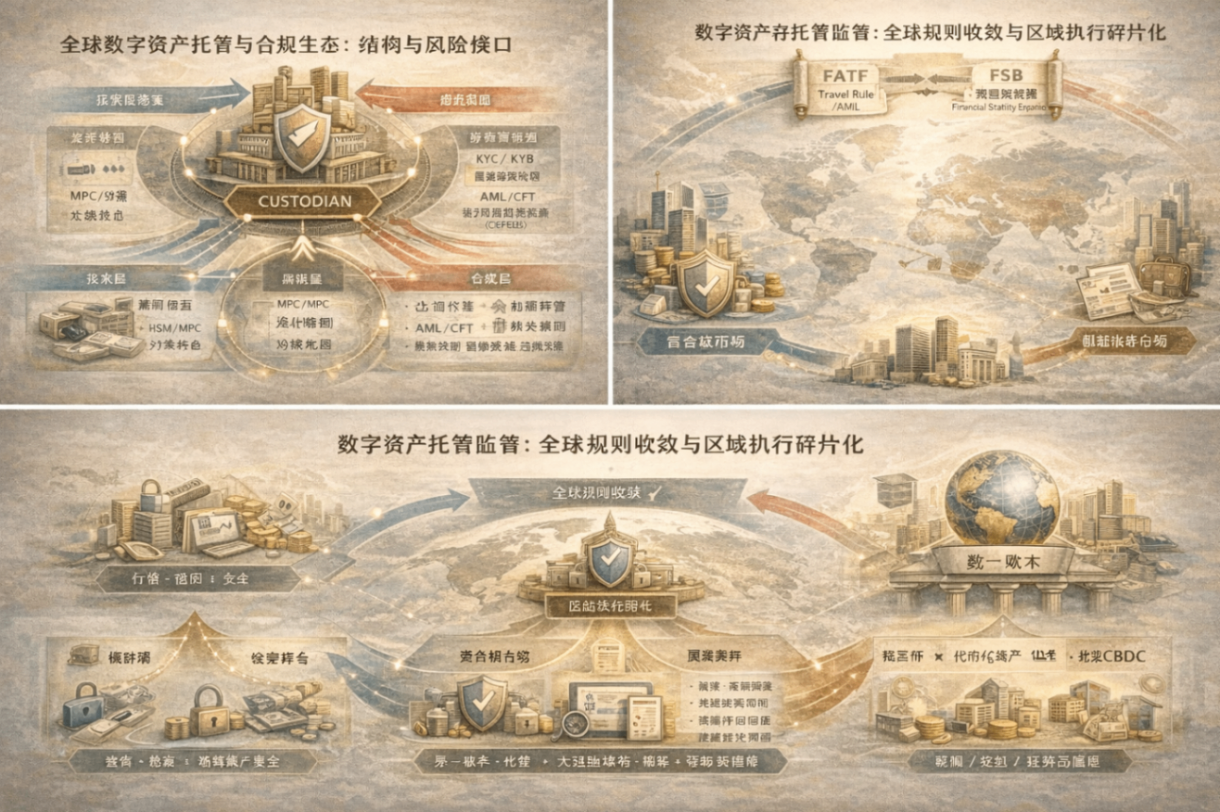 数字资产托管正在经历一次从“安全工具”到“金融基础设施”的迁移。监管的主线越来越清晰:资产隔离、信息可追溯、跨境可协作、风险可审计。但现实世界的执行仍高度碎片化,给套利留下空间,也让合规托管的成本显著上升。下一阶段的赢家不一定是技术最激进的玩家,而更可能是那些能把托管做成“制度工程”的机构:既能守住密钥,也能守住规则。