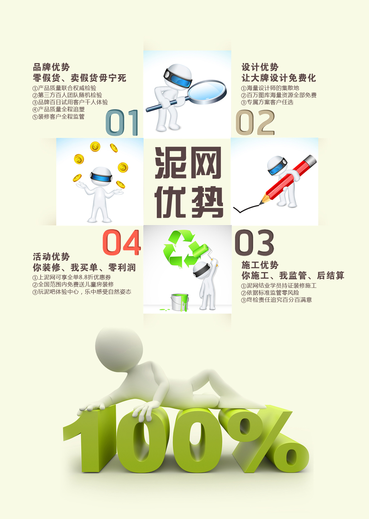 ③营销促销策划服务。泥网重金赞助全国性、长期性的营销促销活动,专业的营销策划团队为装修公司出谋划策,为您省去营销之忧。