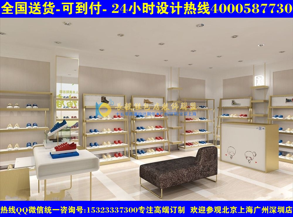 韩国潮鞋店装修展示柜个性鞋店装修及鞋店鞋柜鞋架收银台效果图