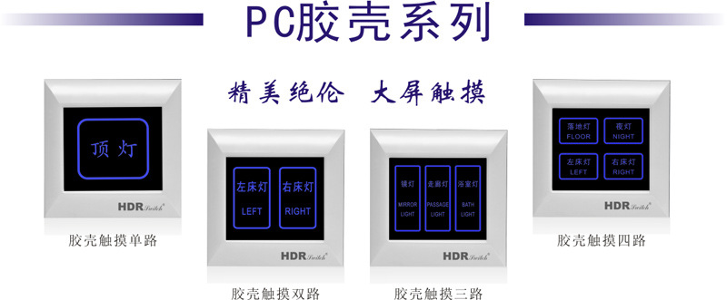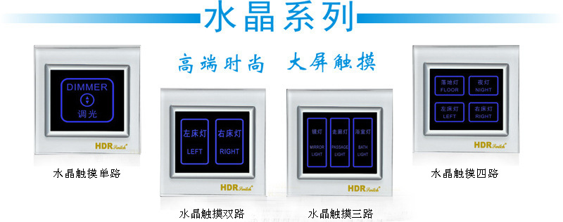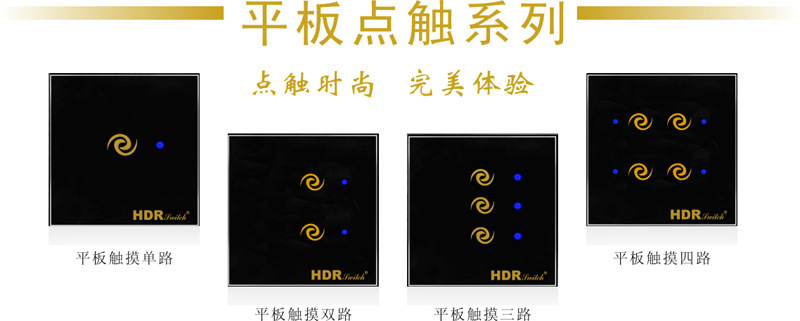 触摸开关系列:触摸灯控开关、感应触摸平板开关、触摸调光开关。
