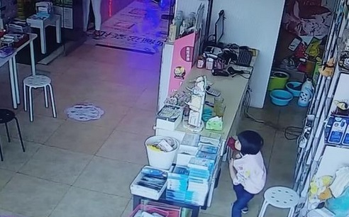昨日,华商报记者查看监控发现,4月24日下午4时46分,一名二三十岁的女子带着一名穿着粉色衣服的小女孩从该店南门进入,站在柜台前咨询,而小女孩开始就坐在旁边的凳子上。