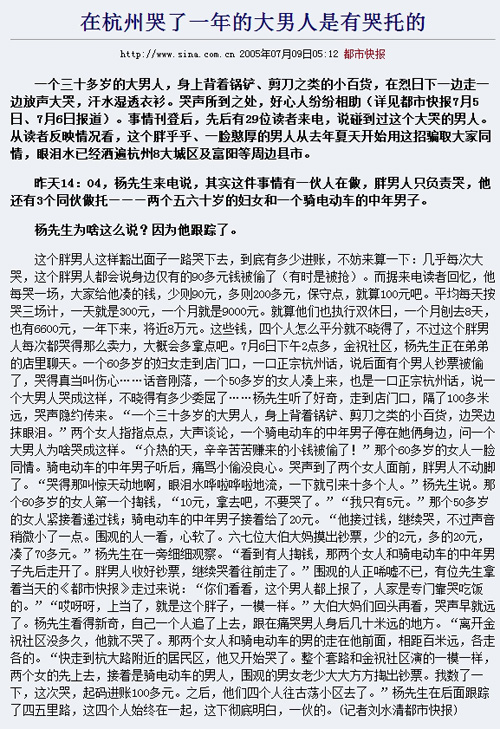 专业大哭十余年博同情敛财