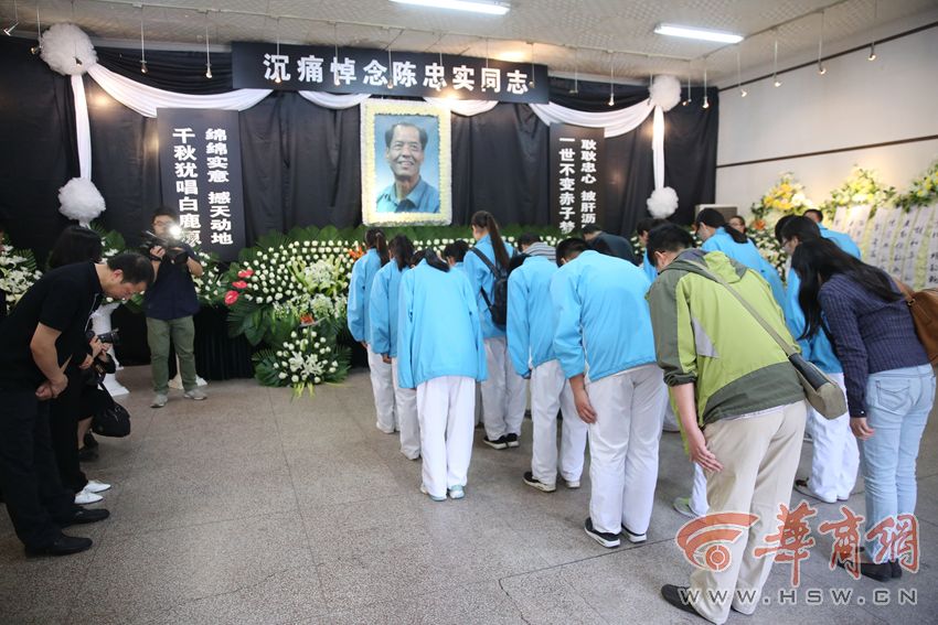 昨日上午9时许,20余名身着浅蓝色校服的学生,排着整齐的队伍出现在省作协大院里。由于赶来悼念陈忠实的各界人士较多,学生们默默地等候在会场外,10分钟后,在老师的带领下,他们分两批排队进场,向先生遗像三鞠躬。