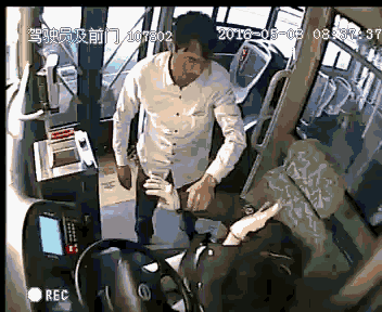 记者从监控视频画面可以看到,该男子揪住女司机头发,并将其头部按在方向盘上连打了数次,还用力将她的手臂反转,并将她从驾驶室元座位上拽下去。当瘦弱的女司机抬起头时,她的鼻子已经流出鲜血。惨遭如此重手,孙连连的神情依然镇定,此时的车厢内仅还有一位惊慌失措的老奶奶。